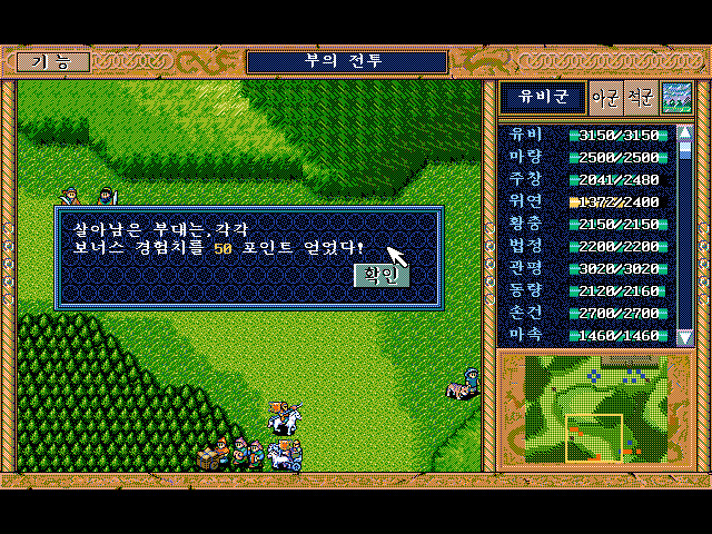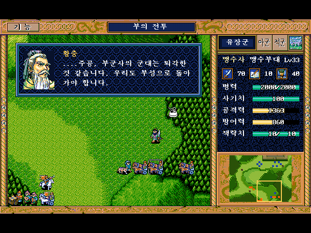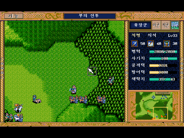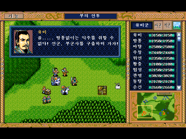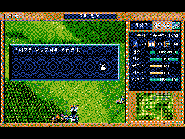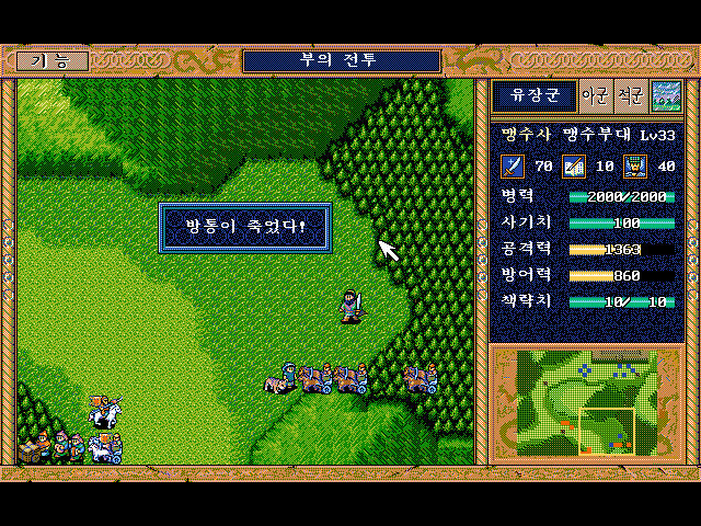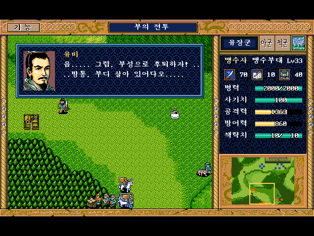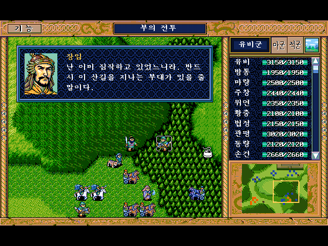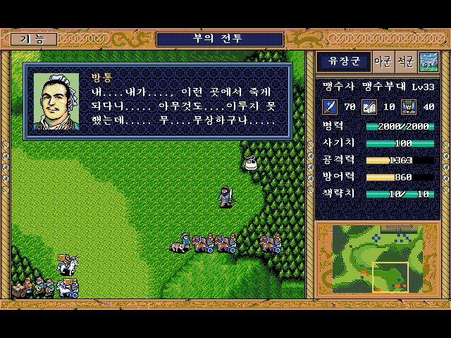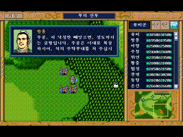 방통을 보호하면서 숲으로 이동하면서 적부대 퇴각 시키면 됨.